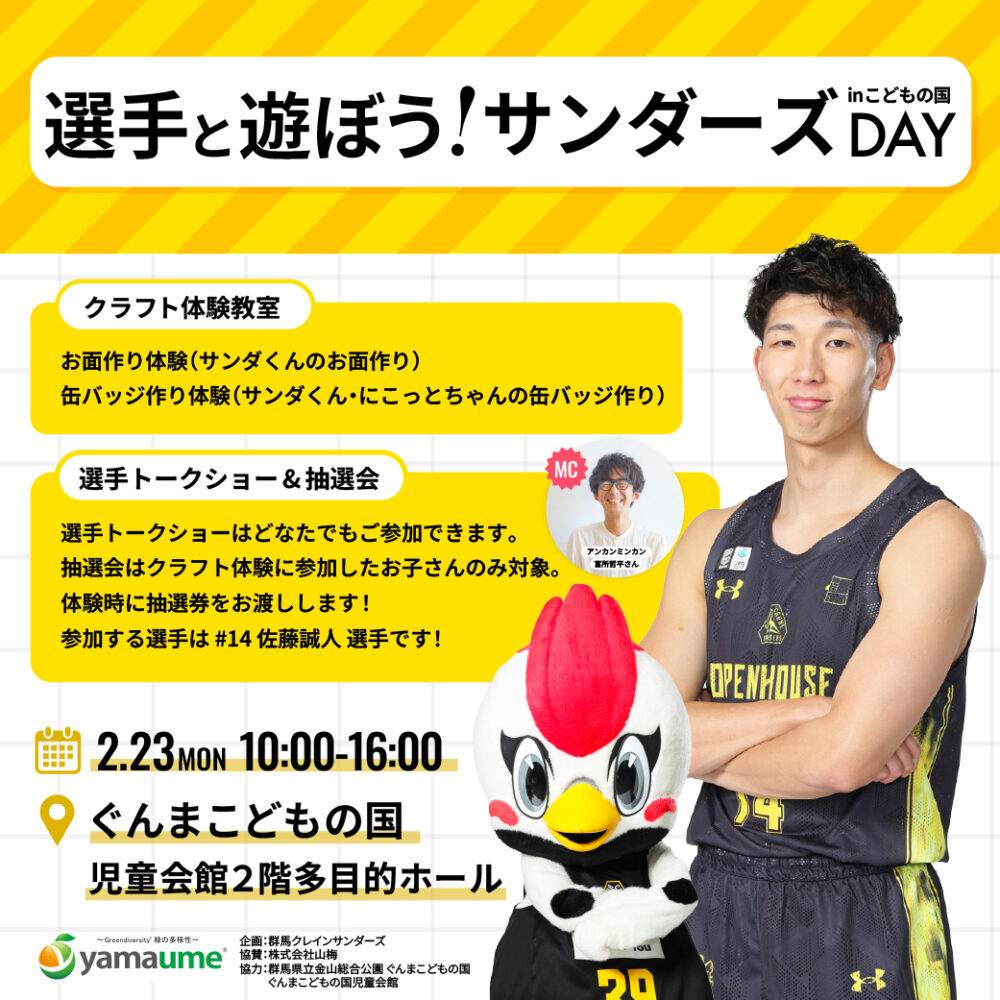 【2/23(月)群馬クレインサンダーズイベント開催決定!!】